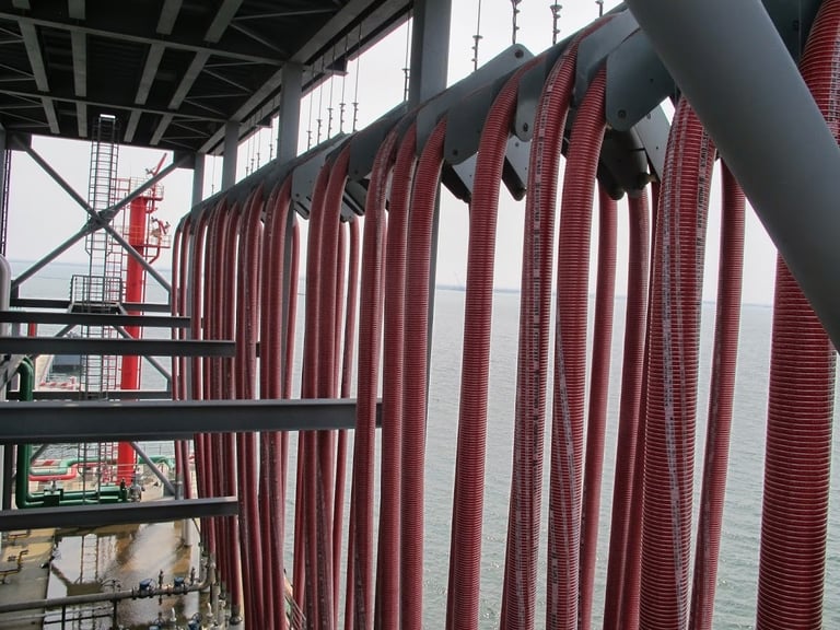The hose tower for the chemical tanker at the hub is designed to facilitate CONCURRENTLY efficient loading and unloading operations while ensuring safety and compliance with industry standards.